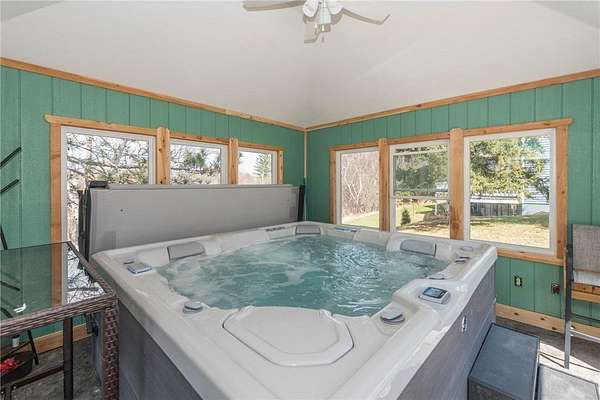 Enjoy year-round comfort in the charming four-season building, complete with French doors and a private saltwater hot tub, perfect for relaxing after a day of outdoor fun. Entertain on the expansive deck that stretches across the back of the home, or unwind in the walk-out basement with direct access to your private slice of nature.