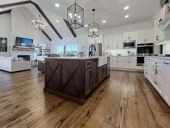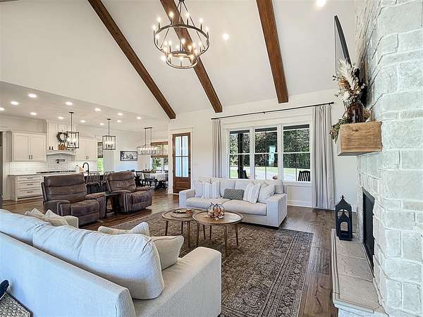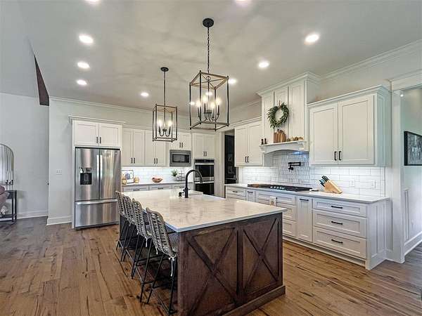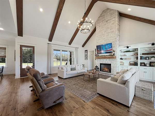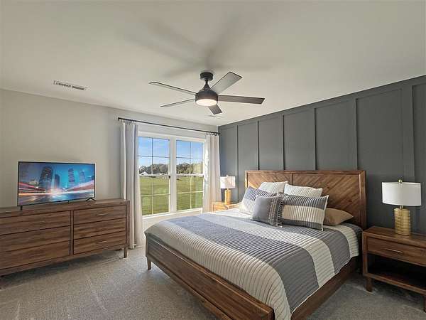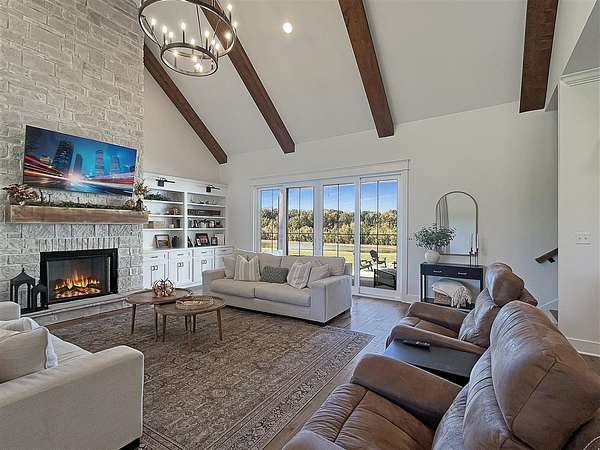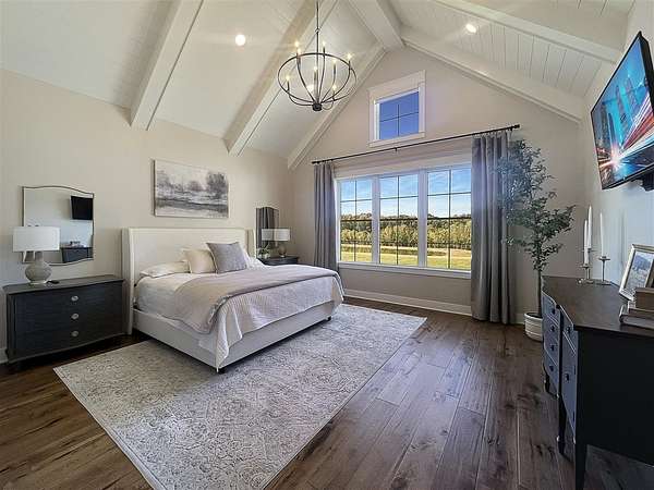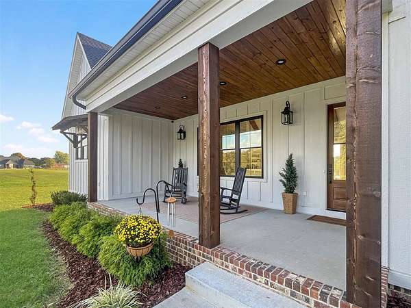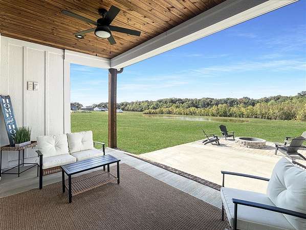 - Covered Front Porch, Exterior Lights, Landscaping, Pond(s), Trees