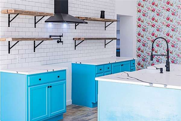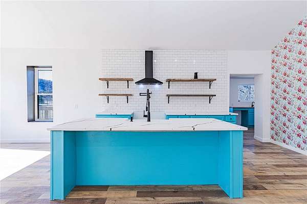 Once the historic Alco General Store, this one-of-a-kind property has been thoughtfully transformed into a 3-bedroom, 2-bath home on 3+ acres, blending preserved character with modern updates throughout. Original details honor the building's past, while today's comforts make it ideal for everyday living. Inside, thick 13-inch walls showcase the solid craftsmanship of its original construction. Timeless subway tile accents pair beautifully with quartz countertops, while a full butler's pantry offers exceptional storage and functionality. The primary suite provides a relaxing retreat with a soaker tub and subway tile walk-in shower featuring double shower heads for a spa-like experience. A hidden bookcase adds a fun, distinctive touch and nod to the property's rich history. Set on 3+ peaceful acres, this property offers a rare opportunity to own a beautifully restored piece of local heritage.