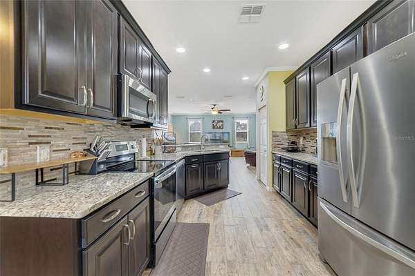 WELCOME HOME Space, privacy, and opportunity come together on 3.64 acres in beautiful Eustis, with NO HOA and a setting that feels peacefully rural while still being close to every convenience! This single-story block home offers 4 bedrooms, 3 full baths, and a SPLIT BEDROOM LAYOUT designed for flexibility and room to grow - both indoors and out. The interior blends character and comfort with WOOD LOOK TILE flooring throughout the main living areas, LUXURY VINYL PLANK flooring in the primary bedroom and two guest bedrooms, and thoughtful architectural details throughout. Crown molding runs through the home, while chair rail detailing in the living area, beadboard and trim accents in the guest bathrooms and hallway, craftsman trim in the guest bedrooms, and select accent walls add warmth and personality. At the heart of the home, the modern kitchen is open to the living and dining areas and features STAINLESS STEEL APPLIANCES, granite countertops, decorative backsplash, pantry storage, and plenty of space to gather and entertain! Step outside and discover a true MINI-FARM/HOMESTEAD lifestyle with endless potential. The level, flat land is thoughtfully improved with CROSS-FENCED pasture and backyard, full-size gates, and an extra-long driveway with additional back-slab parking for three vehicles. The property includes a 12x24 shed with lean-to, wood drying shed, walk-in greenhouse, walk-in chicken coop, raised garden beds, and approximately 100 mature fruiting plants and trees, complemented by bamboo lining the road frontage for added privacy. Outdoor living shines with an in/above-ground PRIVATE POOL, paved 360 swing set, fire pit, and open spaces perfect for enjoying quiet mornings, sweeping views, and gorgeous sunsets. Citrus trees, fruit trees, and garden spaces create a setting that's both productive and peaceful. Located in a well-kept, quiet area of Eustis, this property offers the rare combination of privacy, versatility, and freedom, all while remaining close to shopping, dining, schools, and a variety of nearby lakes and outdoor recreation. If you have been searching for space, flexibility, and a beautiful home with room to live, grow, and create, welcome to N Thrill Hill Rd. Call today to schedule a tour and fall in love with your new home sweet home!