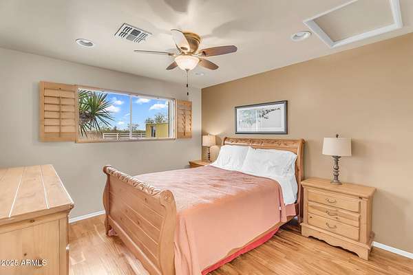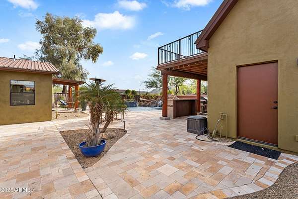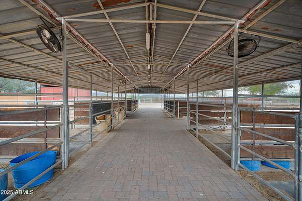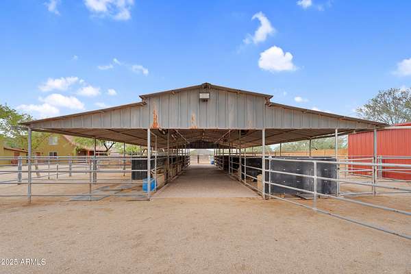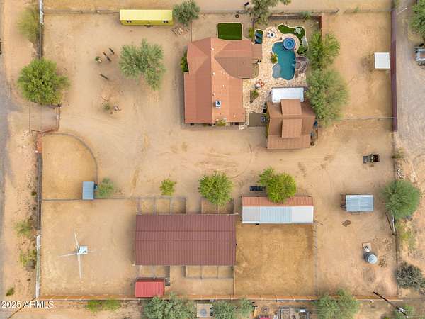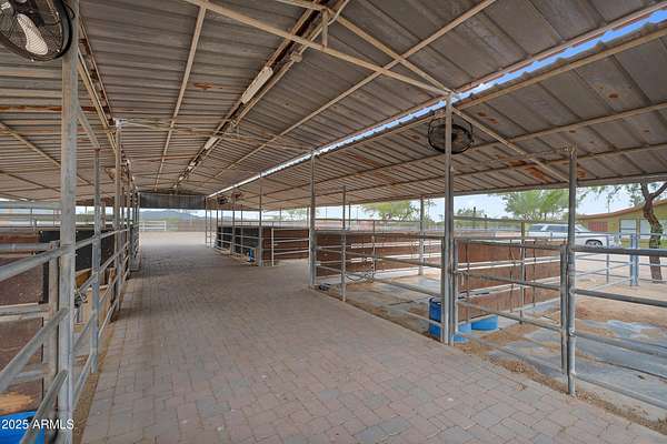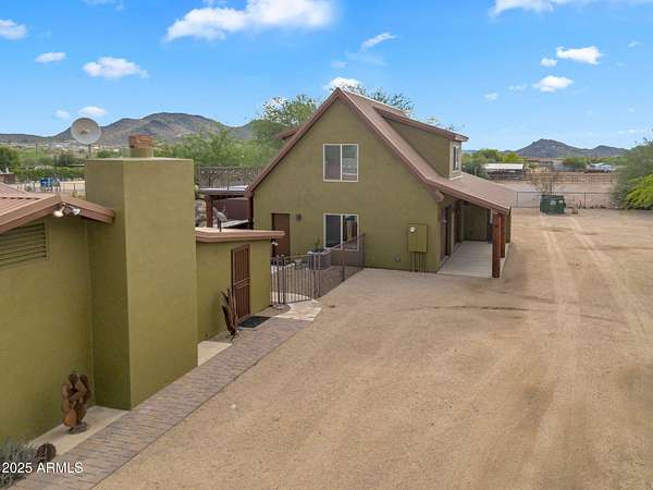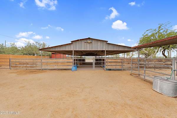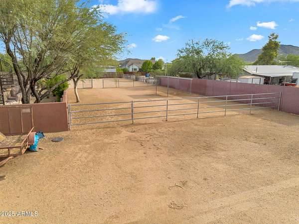 LOCATION, LOCATION, LOCATION!! Located directly across the street from 662 acres of Arizona State trust land, 45 minutes from Wickenburg, 30 minutes from WestWorld 20 minutes from dynamite arena and 10 minutes to the I-17,this property is truly centrally located to all of the major equestrian venues. Here you'll find the ultimate equestrian desert retreat - a rare North Phoenix horse property offering 2.08 acres of lifestyle, luxury, and functionality. Equestrians will appreciate the thoughtfully designed horse setup, which includes a 10-stall mare motel with a paver aisleway, two additional enclosed stalls, multiple turnouts, and a 4-horse hot walker. Riders will love the expansive 110' x 275' arena, along with additional pens for versatility. A large storage container also conveys, perfect for use as a tack room or feed storage. This 2,242 sq. ft. southwestern-style home features 4 bedrooms, 2.5 baths, and has been recently been updated with a remodeled kitchen and master suite. Details like plantation shutters, a cozy fireplace, and abundant natural light embrace true Arizona living. Step outside you new abode to your entertainer's paradise: sparkling pool with slide and hot tub, a spacious outdoor bar with built-in beer cooler, refrigerator, and TVs perfect for game days and sunset gatherings. A detached two-car garage offers both convenience and versatility, with a private 472 sqft club room with 1/2 bath perched above for entertaining or relaxation. This upper-level retreat features a spacious balcony that takes in sweeping views of the pool area and the surrounding landscape, creating the perfect spot to unwind or host guests while still being connected to the heart of the property. A private well, ample space for expansion, and a central location make this property one of the most versatile and sought-after equestrian estates in the Valley. Whether you're hosting, riding, or simply enjoying the Arizona sunsets, this home has it all. Please not conex apartment does not convey but can be purchased on a seperate bill of sale