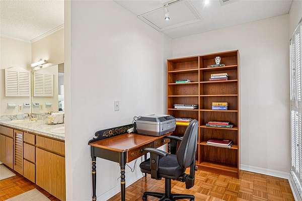 - Built-In Features, Cathedral Ceiling(s), Eat-In Kitchen, High Ceilings, Primary Bedroom Main Floor, Solid Surface Counters, Walk-In Closet(s)