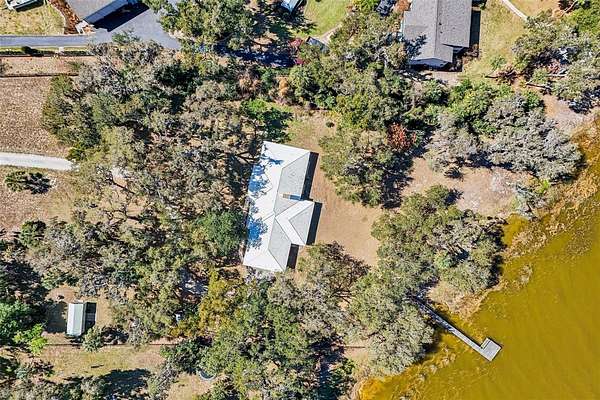 Lakefront living on Lake Yale with over 3 1/4 acres and approximately 285 feet of direct shoreline. This three bedroom, two bath home offers the privacy, space, and waterfront lifestyle you’ve been dreaming about. Begin your mornings watching the sunrise over the water, spend afternoons fishing from your dock, and enjoy boating, kayaking, water skiing, and bass fishing right from your backyard. The expansive shoreline and open acreage create endless opportunities for outdoor recreation, gatherings, gardening, or simply relaxing while enjoying the birds and natural beauty that surround you. A gated entrance and fenced setting provide added privacy and flexibility. Inside, the home feels fresh, open, and inviting with spacious rooms and beautiful lake views throughout. Vaulted ceilings, a fireplace, and large sliding glass doors create seamless indoor-outdoor living. The updated kitchen features beautiful quartz countertops and generous prep space overlooking the water. The primary suite includes a dedicated office space, ideal for remote work or a quiet retreat. An attached two-car garage and a separate shed with roll-up door and ramp provide convenient storage for lawn equipment and lake gear. If you’ve been searching for substantial acreage, 285 feet of shoreline, and a property that truly embraces outdoor living, this Lake Yale home delivers.