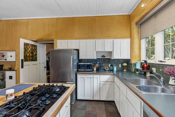 - Built-In Gas Oven, Cooktop, Dishwasher, Disposal, Dryer, Oven, Refrigerator, Washer, Water Softener Owned