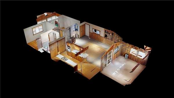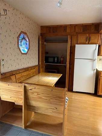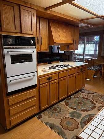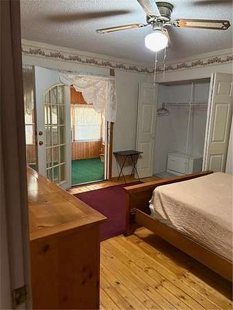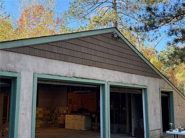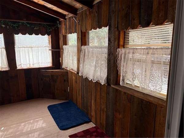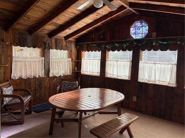 This property offers 3 adjoining lots at approx 1.5 acres located in the Hogan Acres portion , with a 2 bdr , 1 full bath with a roomy kitchen and living room with a sunny porch off the kitchen/living room . The porch interior has beautiful 100 yr old barnwood interior walls with lots of windows to bring in sunlight. The livingroom has a wood burning full fireplace along with a woodstove however there is propane heat as well. There is a beautiful porch attached to the main bedroom as well, along with smaller porches to access as well. ALL APPLIANCES AND FURNISHING STAY WITH THE PROPERTY. This amazing property has a 2 car garage along with 200 AMP service and 2 other one car garage stalls on each side to store your boats and ATV's . The right side one car garage has a drive through port . This property also has an RV spot with electrical and water hook ups for guests. Ceiling fans throughout the home. Washer/ dryer is located on the main floor.