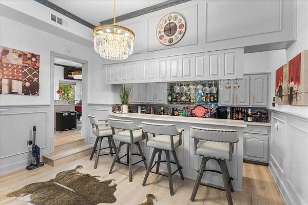 - Built-In Wine Cooler, Cable TV Available, Cathedral Ceiling(s), Chandelier, Decorative Lighting, Double Vanity, Dry Bar, Natural Woodwork, Vaulted Ceiling(s), Wainscoting, Walk-In Closet(s), Wet Bar