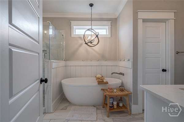 - Attic, Bathtub, Breakfast Area, Breakfast Bar, Double Vanity, Entrance Foyer, Fireplace, High Ceilings, Kitchen Island, Main Level Primary, Pantry, Separate Shower, Tray Ceiling(s), Vaulted Ceiling(s)