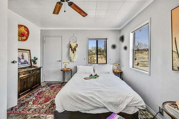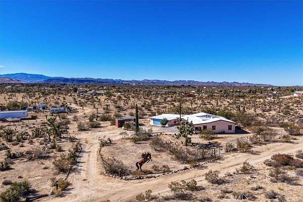 Once in a while a very unique property comes along that needs to be seen in person. This is one of those properties. This home sits up high on a 2.5 acre view lot, and the views to the south are amazing. Mount San Gorgonio and San Jacinto and all the Joshua Tree National park is in plain site. This home would make the perfect short term rental. Outside bar and entertainment area with extra bonus rooms that could easily be made into guest bedrooms or workout studio. Come take a look.