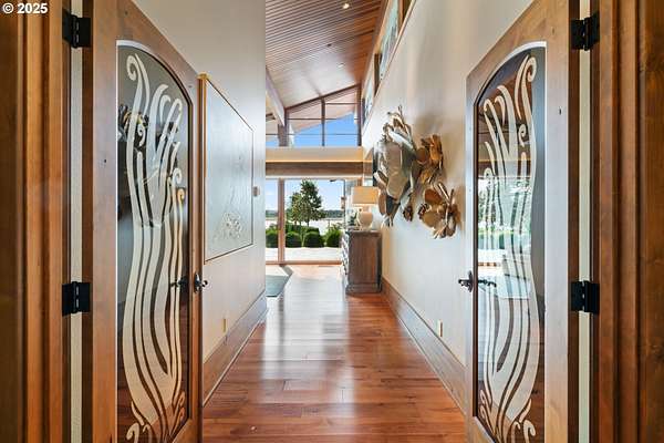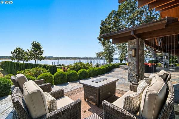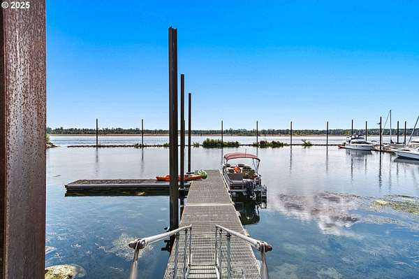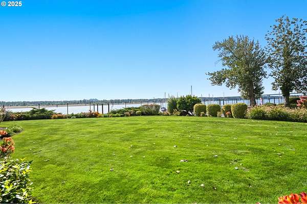 Paradise on the River Private dock with .63 acre tide right lot protected by neighboring marina. 4011 sq ft single level river lodge home on .90 acre lot. Oversized paved circular driveway with RV hookup.Outdoor covered patios overlooking the Columbia River with built in gas fire pit, cooking island with bbq, separate griddle, separate large gas burner with storage drawers. Attached natural gas outdoor heaters- 7 total.Professional landscaped grounds and gardens with a well for irrigation and sprinkler systemOversized 2 car garage with cabinets and built in vacuum.Open floor plan with 2 great rooms, glass walls open to the patios, including 1 in the master.Floor to ceiling camas rock natural gas 2 sided fireplace. Built in bar with refrigeration, sink and wine cooler.Open beam 25' ceilings. Kitchen has side by side sub-zero refrigeration and freezers, Wolfe double oven range with griddle, Wolfe cabinet microwave in the island, Wolfe warming drawer. All beautifully finished in knotty alder cabinetry and a range to ceiling copper range hood.This is a one of a kind, must see property located in Steam Boat landing, riverfront.