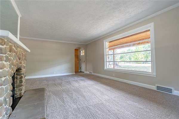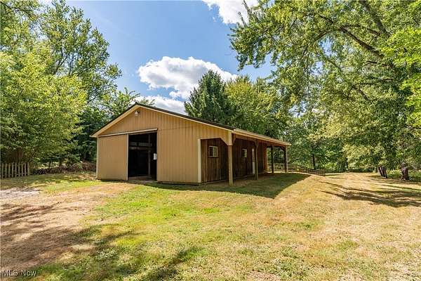 Welcome to this beautiful stone bungalow, brimming with charm and nestled on 2 peaceful acres of countryside. A perfect blend of modern updates and timeless cottage character. Step onto the stunning covered front porch, accented with cedar beams, and picture yourself enjoying quiet mornings with coffee. Inside, the inviting great room sets the tone with a wood-burning fireplace surrounded by stone, a beautifully crafted mantle, and a unique curved built-in bookcase that adds both charm and function. The heart of the home is the bright, updated kitchen featuring classic white cabinetry, subway tile backsplash, stainless steel appliances, and generous counter space. Just off the great room, you'll find two spacious bedrooms and a full bath with a tiled tub/shower combo and a large glass block window. Upstairs, two more cozy bedrooms showcase warm wood paneling, built-in trundle beds, and a convenient half bath. For those who love natural light, the sunroom offers the perfect spot to relax, with a brick accent wall, sliding glass doors to the patio, and access to the attached 2-car garage with a workbench. Outside, your private countryside retreat awaits a patio for gathering with friends and family, and a 30x40 barn with 5 stalls, electricity, and three large fenced-in pens, ideal for animals to graze and roam safely. The partially finished basement adds even more versatility with a large rec room, plenty of storage, and a laundry area. Some recent updates include a new roof, siding, furnace, central air, appliances, kitchen cabinets, bathroom, flooring throughout, and a garage door. Don't miss the chance to call this charming country retreat your own. Schedule your private showing today!