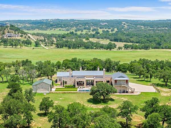 For those seeking more space, more privacy, and more control over how they live in the Texas Hill Country, East of Eden delivers a rare combination of design, land, and location. Set on approximately 10.01 acres just outside the gates of the renowned Boot Ranch community and only minutes from downtown Fredericksburg, this newly completed estate feels like a private destination all its own. Across roughly 6,184 square feet and three thoughtfully placed structures, the property can comfortably accommodate up to 18 guests, making it ideal as a primary residence, generational retreat, or high-end rental opportunity (buyer to verify use and permitting). The main residence offers an elegant owner's suite, with additional guest spaces oriented to provide both connection and privacy. Generous ceilings, expanses of glass, and long Hill Country views create a seamless connection between indoors and out. Interiors feature a highly curated finish-out, including designer fixtures, a chef's kitchen with a Dacor Modernist range, custom cabinetry, sophisticated lighting, and richly layered textures underfoot. Every space has been considered--from warm, welcoming living and dining areas to spa-inspired baths designed for true relaxation. Outside, the estate is anchored by live oaks, sky, and views. A resort-style pool, stone terraces, and multiple outdoor living areas invite alfresco dining, lounging, and sunset gatherings. Broad lawns and thoughtful hardscaping create natural zones for entertaining, play, and quiet retreat, while the acreage offers room to expand, garden, or further personalize the property to your vision. Located in one of the most desirable corridors outside Fredericksburg, close to golf, wineries, and the historic Main Street district, East of Eden offers the experience of a luxury destination with the independence of a stand-alone Hill Country estate. A bespoke, move-in ready property of this quality--on this much land in this location--is exceptionally hard to replicate. Here, space, privacy, and craftsmanship are the defining luxuries.