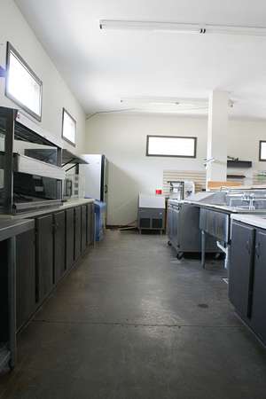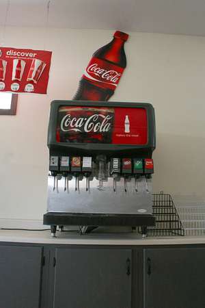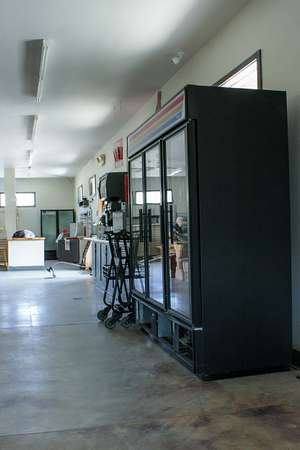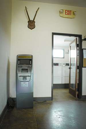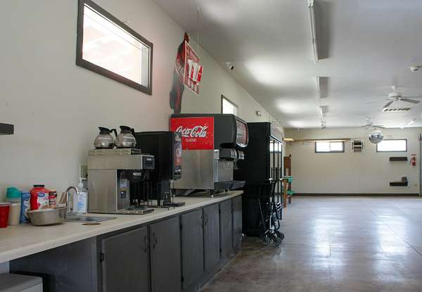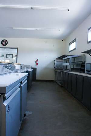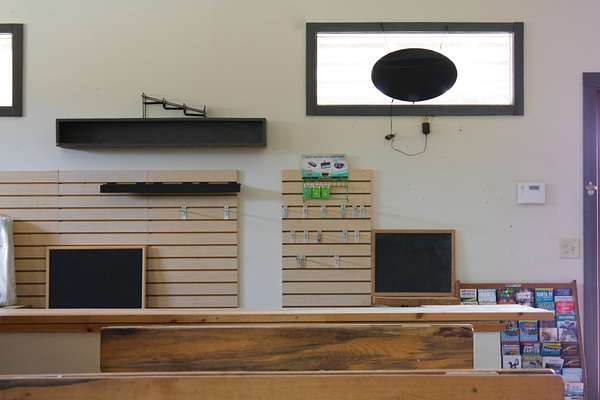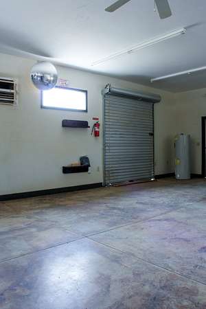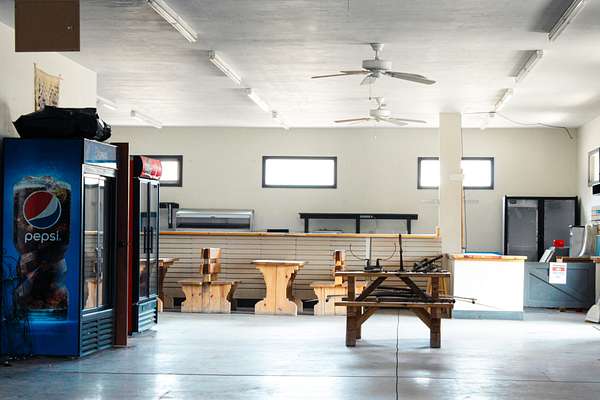 The rear of the building contains a wide-open space with concrete flooring and a roll-up garage door, previously used as a recreation area and well-suited for storage, expanded retail space, or conversion to other opportunities such as a feed and tack supply store. An ATM is installed for customer use.