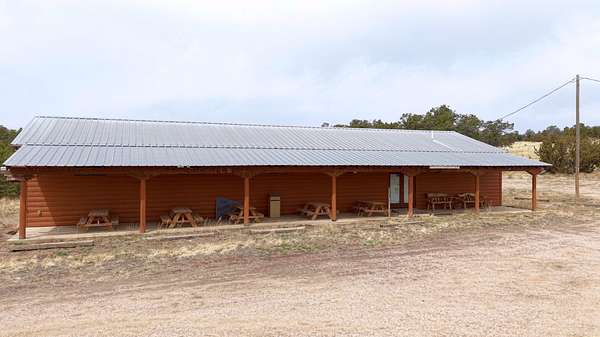 The High Desert Outpost sits at the corner of Candy Kitchen and Five Gate Roads, and consists of two parcels totaling +-29 acres. The first, +/-4 acres at 371 Candy Kitchen Road, contains the Outpost building, propane station, RV hookups, and parking area. The second, +/-25 acres at 18 Five Gate Road, is vacant and undeveloped, offering plenty of space for future improvements, additional homesites, or commercial growth. The land features a mix of gently rolling terrain and open clearings with scattered pinon-juniper vegetation, and is easily accessible via maintained county roads.