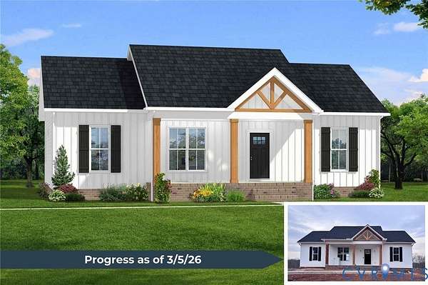 Modern comfort meets peaceful rural living in this beautifully designed home featuring the popular Laurel Creek floor plan a 3 bedroom, 2 bath home. The open concept great room boasts a soaring cathedral ceiling and flows seamlessly into the dining and kitchen areas, perfect for entertaining and everyday living. The kitchen shines with granite countertops, Merillat cabinets, a central island, and pantry, while durable LVP flooring extends throughout the main living spaces. Enjoy serene country life on a private 2.5-acre lot in desirable Buckingham County, just 20 minutes from Scottsville and Dillwyn, close to schools, amenities, and recreation. This home offers the perfect combination of modern design and natural charm.