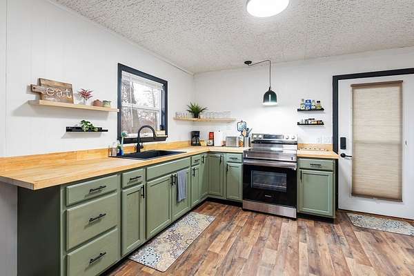Enjoy peaceful mountain living in this comfortable 3-bedroom, 3-bath home with year-round long-range views and plenty of privacy. Each bedroom has its own ensuite bath, making it great for families or guests. The single-level layout offers easy living, and the open-concept design connects the living area, dining space, and brand-new kitchen for a welcoming feel, while a wood-burning stove adds warmth and charm on cool mountain days. With no deed restrictions, you have the freedom to use the property as you choose--full-time home, weekend getaway, or rental. Affordable, practical, and surrounded by natural beauty, this home offers simple mountain living with room to make it your own. Acreage is a portion of the parcel and is approx. Adjoining 9 +/- acres with electric, water, and a workshop available for purchase.