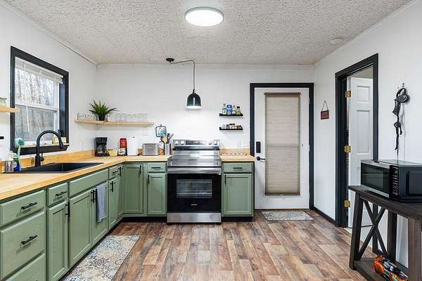 Successful vacation rental! Tucked into the mountains with sweeping long-range views, this charming 3-bedroom, 3-bath cabin is the kind of place where weekends slow down, and memories are made. Fully furnished and move-in ready, it's easy to arrive, unpack, and start enjoying the peace and privacy right away. Designed for comfortable mountain living, the single-level layout features an open-concept living, dining, and brand-new kitchen--perfect for gathering after a day outdoors. A wood-burning stove adds warmth and charm on crisp mountain evenings, while each bedroom offers its own ensuite bath, making hosting family and friends effortless. With no deed restrictions, this property gives you the freedom to use it your way--whether as a full-time residence, a weekend retreat, or a vacation rental when you're away. Acreage is a portion of the parcel and is approximate. An adjoining 9 acres with electric, water, and a workshop is also available for purchase.