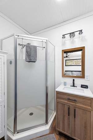 - Ceiling Fans, Kitchen/Dining Room, Kitchen/FR Combo, Large Master Bedroom, Living/Dining Room, Main Level Living, Open Floor Plan, Primary On Main Level, Primary W/Ensuite, Split Bedroom, Walk-In Closets