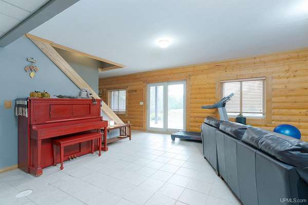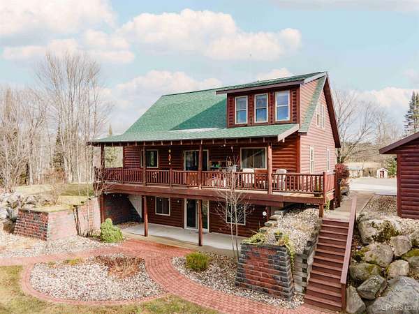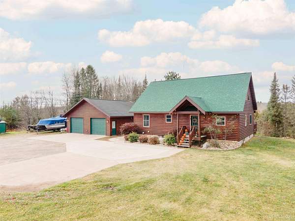 Peaceful, private, and spacious are just a few words to describe this beautiful log home on 20 acres a few miles from Iron River. Hosting 3 bedrooms, 3 baths, and an open-concept living area allowing you plenty of room to entertain or just sit back and relax. Upper level currently hosts the master suite with 2 bedrooms on the first floor along with a full bath. Patio doors bring you out to a covered deck to view amazing sunsets. The finished walkout lower lever leads to a covered patio and seating area overlooking nature's design of lush trees, fields, and all the wildlife the Northwoods has to offer. There's a 36x34 heated garage with running water, a 24x36 shed for all the outdoor toys, and a custom 9x36 chicken coop for a fun extra. Convenient for outdoor sports, hunting, ATVing, or just exploring your surroundings.