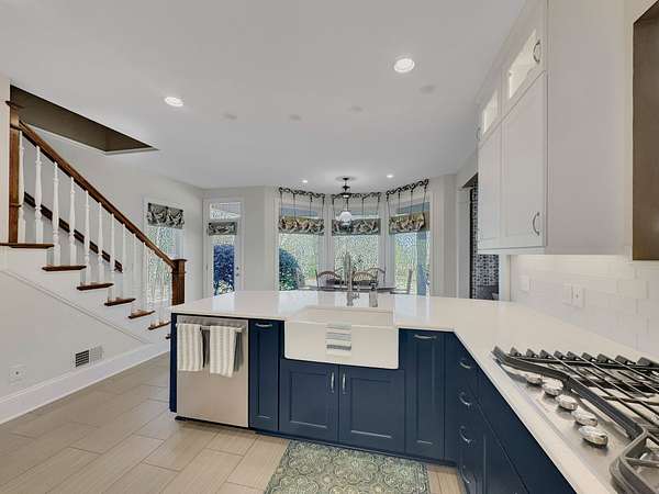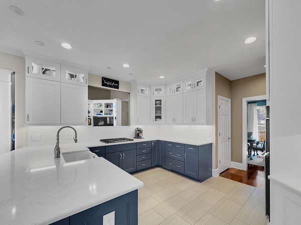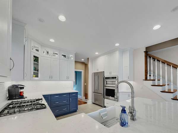 Inside, the home features rich Brazilian walnut hardwood flooring, a fully remodeled kitchen with ceiling-height lighted cabinetry, sleek quartz countertops, a built-in microwave/oven, propane gas cooktop, and an eye-catching farmhouse sink--perfect for entertaining or everyday living. Walls and trim have recently been painted/touched up.