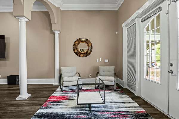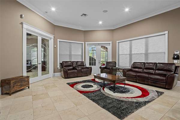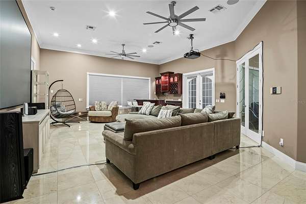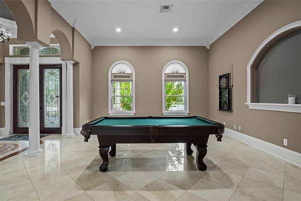 Inside, 5,478 square feet of air-conditioned living space welcomes you with a grand foyer, formal living and dining rooms, and striking architectural details such as Roman columns, marble floors, and graceful archways.