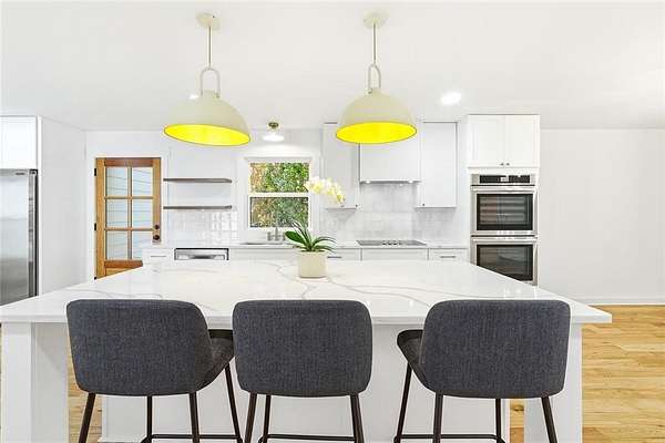 Enjoy scenic mountain views from this private 2.2-acre end of cul-de-sac estate lot, only minutes from stores, shops, restaurant's, expressways and outdoor activities. This is a family paradise! A full 2025 renovation from top to bottom by design-build specialist AH Dwellings. New roof, mechanicals, plumbing, wiring, windows, EV equipped, and more. With 3 finished levels, sprawling over 5,000 SF of heated and cooled space on 3 levels, hi-end modern designer finishes throughout. Oversized primary suite and 2 additional secondaries on main. Spacious open floor plan concept with gourmet chef's' kitchen and formal dining, flowing into oversized family room with real stone wood burning fireplace, opening onto a large, screened porch with open-air grilling deck attached. Trees have been removed from the front yard creating the perfect flat space for fenced secured play space for pets and kids. 10 year structural and annual home warranty included.