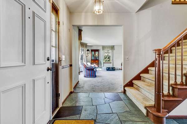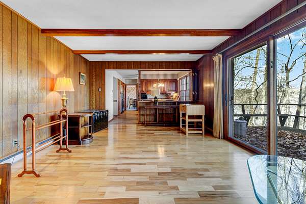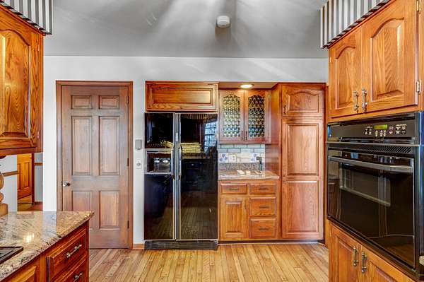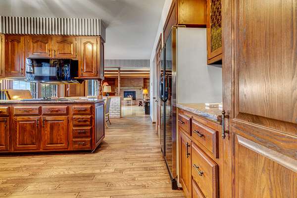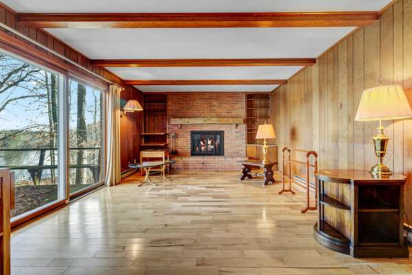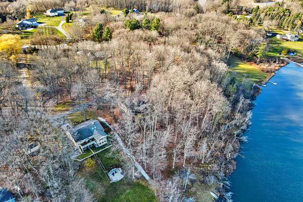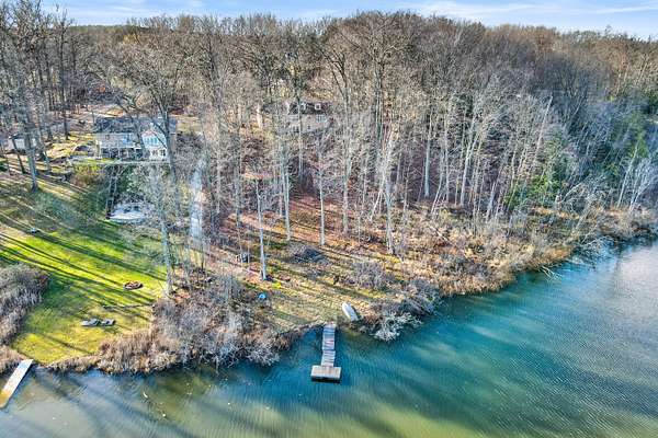 Situated on a large wooded lot, overlooking Fourth Lake, on Fremont's scenic North side, this spacious and well built all brick 4 bedroom home offers the perfect blend of comfort and privacy surrounded by natural beauty. Spanning three spacious floors, the home features four bedrooms upstairs and 2 full baths, including a large Primary En Suite with 4 closets, a private shower & bathroom. The main floor offers a large Family, Living & Formal Dining Room, in addition to the Kitchen & Dining Area which overlook the Lake. You will love the wood & stone floors on the main level in addition to the beautiful brick wood burning fireplace. The lower level offers another large living area, plenty of storage, laundry room and a walkout to the stairs leading to the lake. Recent updates include a newer roof, windows, granite countertops, and mini splits for heat and AC on the main & lower levels, ensuring modern convenience and long-lasting quality. Whether you're enjoying the lakefront, exploring your 1.8 acre lot, or gathering around the fireplace, this home provides a sanctuary of peace and possibility. Don't miss the chance to make this Fremont treasure yours!