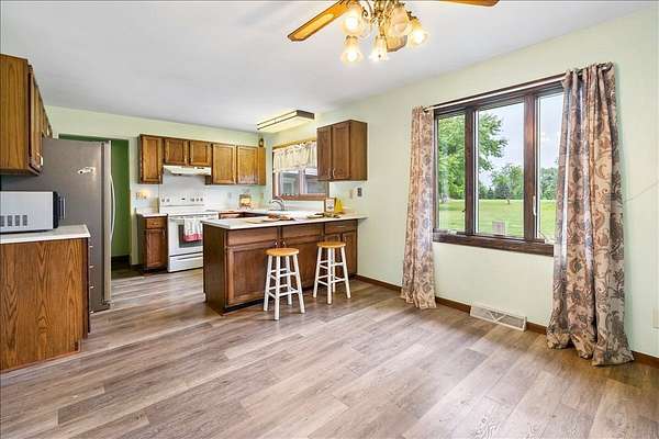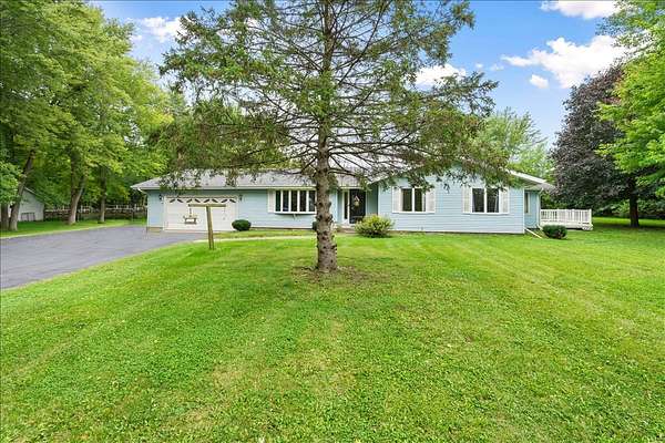 Welcome to this classic ranch home, perfectly set on 2 acres of peaceful countryside. The home features a wood-burning stove for cozy evenings, an attached 2-car garage, and a full basement with partial finishing that offers flexible space for storage, hobbies, and a workshop. Step out of the kitchen and enjoy the east-facing screened porch, ideal for morning coffee while soaking up the sunrise, or catch the sunsets of the west-facing front of the home each evening. A detached shed with a roll-up door provides even more storage or workspace options-perfect for equipment, projects, or outdoor toys. The homes roof is about 8 years old and the porch roof was done in 2024. The HVAC is serviced twice a year with a contract, water softener is rented. Professionally cleaned allows you to move right in and put your touches to it a little at a time. Room dimensions and square footage are approximates, verify anything of importance. Home is sold As-Is