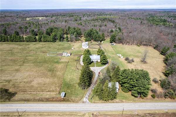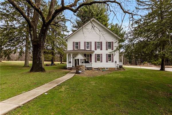 Set across 115.16 acres of rolling countryside, Majestic Farms offers a rare opportunity to own a truly versatile estate where lifestyle, income potential, and future development possibilities come together. With sweeping views, established infrastructure, and direct access to Rails to Trails, this property is designed to support everything from a working farm to an event-driven business—or both. At the heart of the property sits a spacious 4-bedroom farmhouse with 1 full and 1 half bath, offering classic charm and the flexibility to serve as a primary residence, guest lodging, or potential bed & breakfast/Airbnb. The home is currently tenant occupied, presenting immediate income potential or the option to transition into owner-occupancy. The land itself is thoughtfully improved and ready for a variety of uses. Approximately 40 acres are enclosed with high tensile fencing—ideal for horses or livestock—while multiple outbuildings provide the infrastructure needed for farming, agricultural operations, or hobby use. A fully equipped veterinary building features water, electric, and heated concrete floors, offering a unique advantage for equestrian or livestock care. Additional buildings are serviced with gas, electric, and water, supporting a wide range of operational needs. A standout feature of the property is the 4,000+ square foot banquet hall, complete with kitchenette, bathrooms, and furnishings—perfectly suited for weddings, events, or conversion into a brewery, winery, or other destination venue. For outdoor enthusiasts, the property includes elevated, carpeted hunting stands with windows and decking, allowing you to enjoy the land in comfort. Two separate entrances provide convenient access and flexibility for residential, agricultural, or commercial use. Additional highlights include 200-amp electrical service, high-speed internet availability, and a security system. Vet shed farming equipment included heating pad, panel system, weigher and squeeze shoot. Whether you envision a private retreat, income-producing farm, event venue, or future development investment, Majestic Farms delivers unmatched scale, infrastructure, and opportunity in one remarkable setting. Schedule your private showing to fully experience everything this property has to offer.