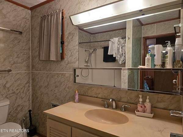 DIRECT-PRIVATE-LAKEFRONT ...This property holds a fabulous home site where views of the lake & mountains are seasonally visible now, and could be opened for permanent views by thinning some of the trees. The property has direct access to the lake and its own concrete ramp. It is located on the quiet side of the lake and very appealing in its natural beauty. It even has its own cove, making a natural pool near the dock. The driveway is gated and leads all the way down to the dock from the road. it is completely private. Pretty woods hide the property away from the road unto itself. A creek runs along the way in, creating a beautiful driveway to the bottom. A very substantial home is there to be enjoyed for whatever use may suit you. It has been the meeting place for the family for many years to enjoy the lake. It is a solid, substantial building, livable as it is, with ample rooms, electricity on circuit breakers, central a/c, a full kitchen, ample living-area, and 2 large bedrooms each with full baths. And, there's a fabulous big, screened-in, covered back porch overlooking the lake. A large carport with a high clearing covers a section of the driveway. This area is equipped with basic outdoor counters, a sink with running water, and an area for cleaning your catch. There's room for a grill, of course, and plenty of room to gather under cover in the open air outside. The property has its own concrete ramp and a private pontoon dock. The pontoons are insulated in Styrofoam and the dock itself is permanently installed with anchors in concrete that enable it to rise and fall with the water. This property has been owned by the family since the 1930's. You might benefit by knowing some of its interesting history and unusual added features. I have attached additional information into the MLS system. Just ask your agent for it. According to the maps this property does not flood.