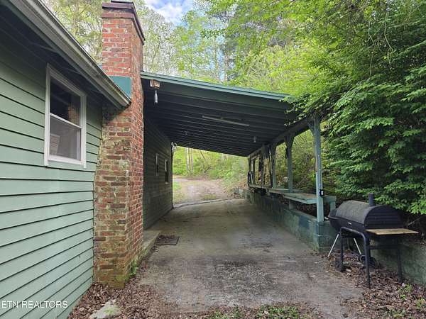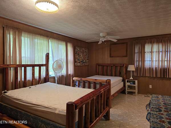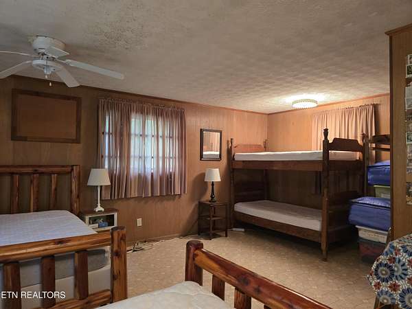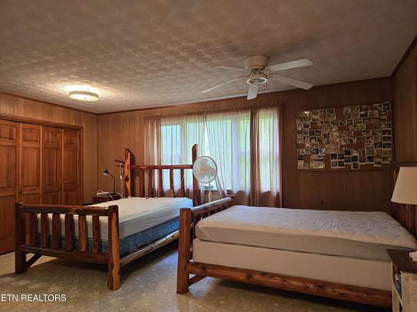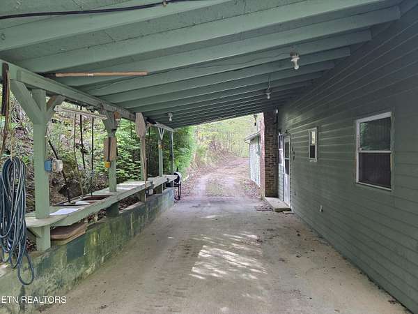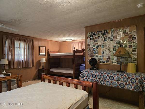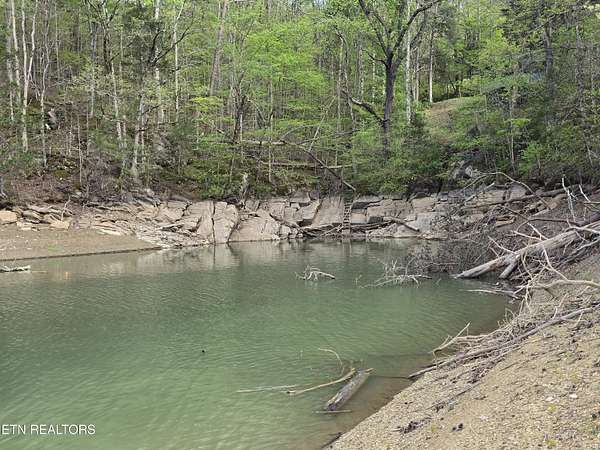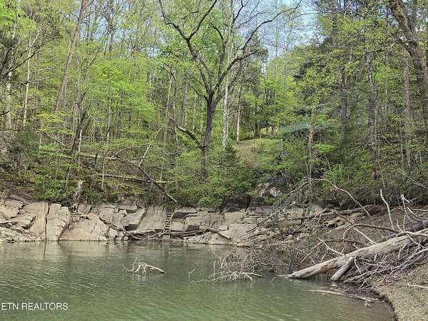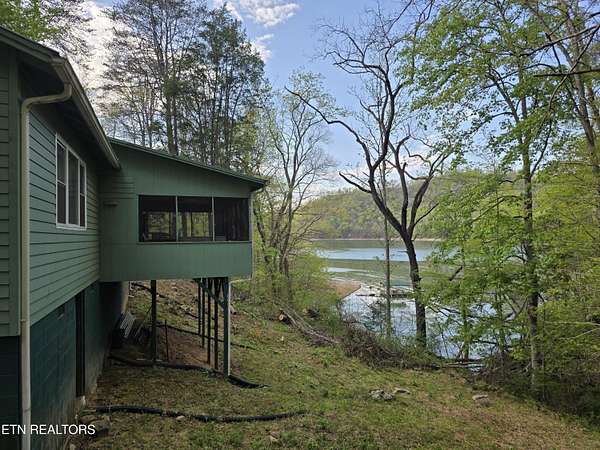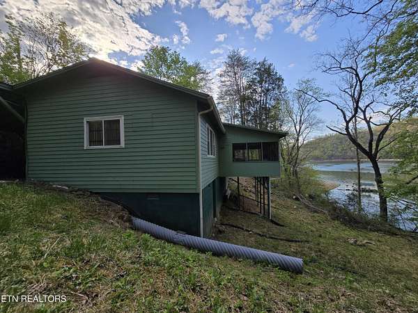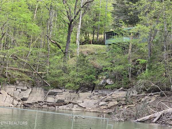 ENJOY YEAR-ROUND ACCESS to NORRIS LAKE on the quiet side with full privacy. This property holds a fabulous home site and is very appealing in its natural beauty. It is still much like it might have been found in the early 1900's. There are only a few exceptions. It has a private driveway from the road now, rather than having to come in only by the water as it was back then. Now it has a private floating pontoon dock that has steel anchors in concrete to provide for the rise and fall of the lake and to hold it in its place. It still has beautiful trees, a lovely creek, amazing views of the mountains and various sections of the lake. A story-book, natural pool carved out of the rocks over the ages has created a sort of grotto at the water's edge. Even better, the lake is always accessible, year-round by a special ramp. Truly this property is the perfect get-away, private retreat, family fun place, site for an exciting new home, and, as a present fishing camp. It is all of these, all at the same time! The building is rather nice. It has been added to and improved, and used as a gathering place for the family through the years. It is sturdy, in good working condition, and attractive in a quaint sort of way. It has a living room, a kitchen, a laundry room, two large extra rooms for beds or any other purpose, two full bathrooms, a block wall basement, and a very large covered screened porch overlooking the lake. The living-area rooms are in the middle of the house with the bedrooms and baths at opposite ends. A section of the driveway in front has a raised ceiling. Creatively, this outdoor area is prepared for cleaning fish and for use as a covered outdoor patio. The building is livable with electricity (on breakers), central air and heat, well and septic, and appliances. The property meets the road along the top with a private driveway. Slightly downhill, is a flat area, that is still high up. It might be the perfect home site with a nice big yard. It is away from the road and looks out to the far part of the mountains and the lake. Currently it has a seasonal view. This can be magnified year-round by carefully clearing some of the trees. It is interesting to note that The Clinch River actually runs through Norris Lake. It is straight out from the property in the wide, middle area of the lake beyond the pontoon dock. Decades ago, the family's patriarch had the foresight to install a concrete ramp (6'' deep x 12' wide). The ramp runs out, approximately 150 yards, to the Clinch River Basin at the bottom of the lake. This ramp makes the lake accessible to you year-round and it belongs to the property. No easements or rights-of-way have been granted through the property except for understood emergency application(s), and a very short crossing of the ramp to the water for a friendly neighbor from his own private driveway. No one else has the right to enter the property by the road or from the lake, or to use the pontoon dock. It should be understood however, that all over the lake shore and on the lake, everyone is permitted to enjoy TVA managed land. The property lines of the TVA management area rise, and come in, and go out, as the waters expand or recede. According to the maps, the property does not flood. I hear the lake access on this property exceeds that of most of the best Marinas. The wood stove is not included. Some of the furniture may remain.