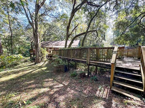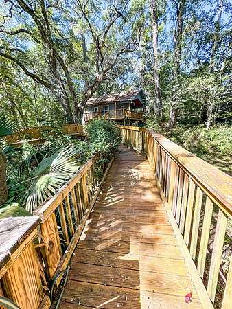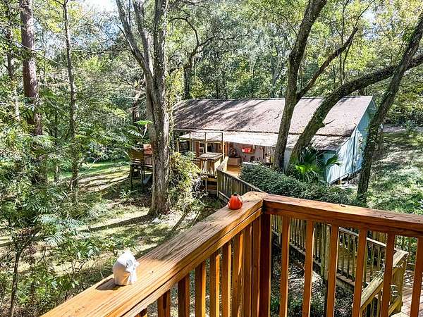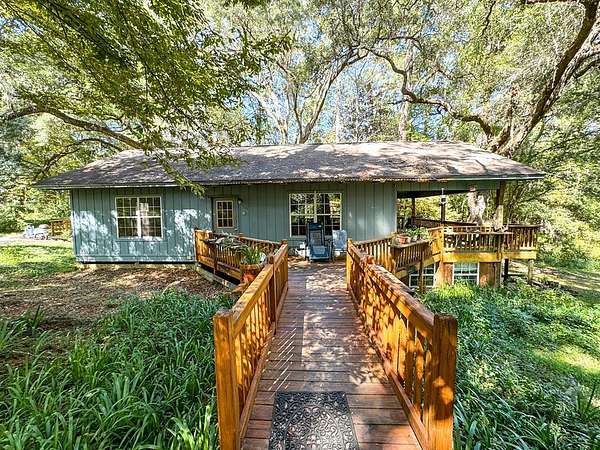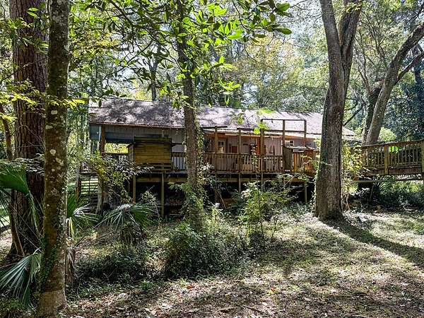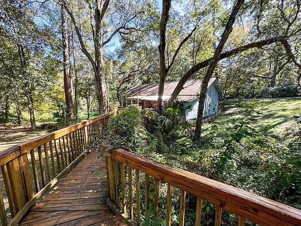 Nestled in a quiet northeast neighborhood near Maclay Gardens and I-10, this unique property offers serenity and convenience. Tucked away on a 2-acre lot, with 2 cabins surrounded by natural beauty-featuring a meadow, scenic ravine and historic dam site, plus surrounded by lush landscaping. (Originally constructed as a fishing spot during the property's dairy farm era, which now offers a unique natural landscape after natural erosion over time. The main cabin (912 Sq Ft) boasts a bright open layout with spacious bedroom, a large great room and a covered porch. The carriage house (576 Sq ft) offers flexibility with a sleeping area, great room and large covered porch. It has its own bathroom/laundry-perfect for a quest suite, home office or income producing rental. City of Tallahassee utilities (electric, water, sewer and trash pickup).Both cabins are rented long term for a total of $2,900.MLS # 324383 Parcel ID 110480A0270 adjoins property and can be purchased for $125,000. Schedule a viewing today to experience this peaceful retreat.