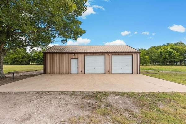 Peaceful 10-Acre Modern Farmhouse Ranchette with Stocked Pond & Workshop! Welcome to your dream country escape. This beautifully updated property offers the perfect blend of modern comfort and serene rural living. With thoughtful upgrades throughout and plenty of space to roam, relax, and create. This is Texas tranquility at its finest. The open concept layout of the home seamlessly connects the living, dining, and kitchen areas, creating an inviting atmosphere. Updated flooring throughout the entire home and an abundance of natural light. Bright kitchen with brand new gorgeous countertops and stainless steel appliances. Large beams in the living room draw your eye up to the vaulted ceilings and complement the area. The primary bathroom has modern touches including a stunning custom oversized shower. There are 2 additional bedrooms, a large utility room with sink and pantry, an oversized 2-Car Garage with ample space for vehicles plus extra storage for all your gear. Fully Powered Workshop equipped with electricity and two overhead doors. A versatile space that is ready for hobbies, projects, or extra storage.