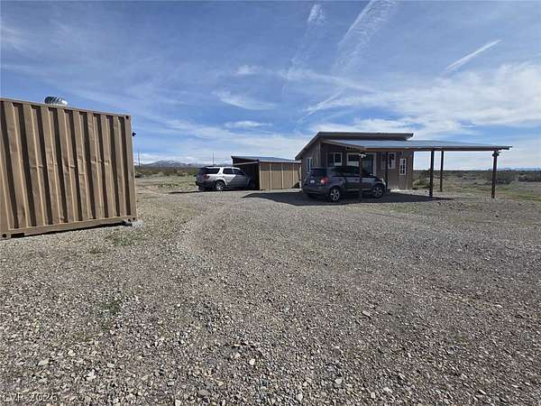 10 Acres, Hilltop Privacy, Massive Views Ready-to-Use Off-Grid Set Up. Perched on hillside overlooking the Pahrump Valley, this fully fenced, gated 10-acre property offers panoramic 360° views, exceptional privacy, and immediate usability. Conveniently located just 8 minutes from Walmart and 50-minute drive from Las Vegas — ideal for commuters or a private retreat. NO HOA. Easy road access. Thousands already invested in off-grid improvements: solar-powered insulated office shed with mini-split AC, long graveled driveway, prepared house pad, open-ended garage structure, and fully fenced secure locking gated entry. Move in ready use land immediately without starting from scratch. Priced below comparable acreage within commuting distance of Las Vegas. Ideal for pilots or aviation enthusiasts — pair with a nearby hangar lot at Calvada Meadows Airport less than 2 miles away. Approx 15 minutes from the proposed Spaceport, increasing future land value. NO OWNER FINANCING, CASH ONLY