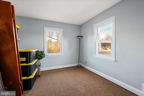 - Attic, Carpet, Entry Level Bedroom, Window Treatments, Wood Floors, Wood Stove