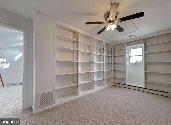 - Carpet, Ceiling Fan(s), Galley Kitchen, Traditional Floor Plan