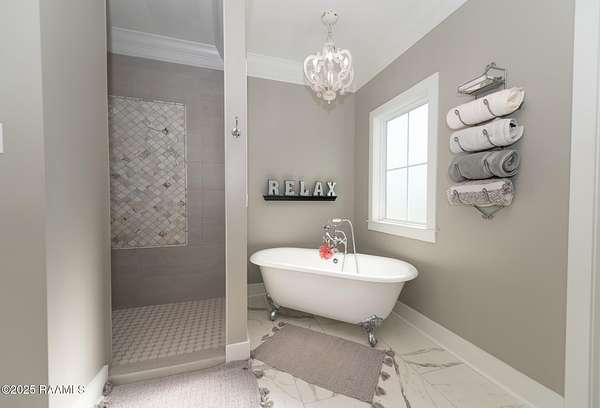 - 9+ ft Ceiling, Bookcases, Built-Ins, Cathedral Ceiling, Crown Molding, Gas Stove Con, Kitchen Island, Office, Primary Bath, Separate Shower, Standalone Tub, Varied Ceiling Heights, Vaulted Ceilings, Walk-In Closet(s)