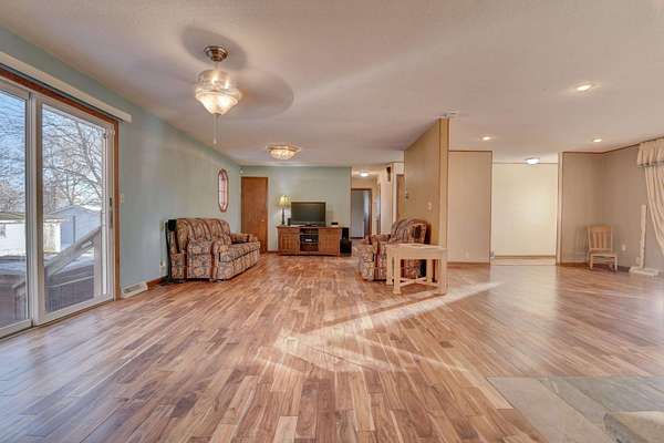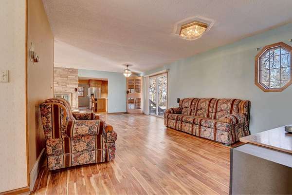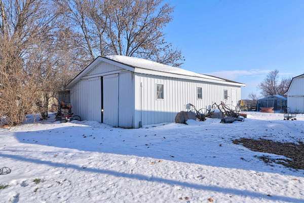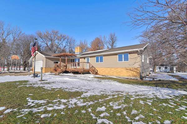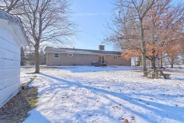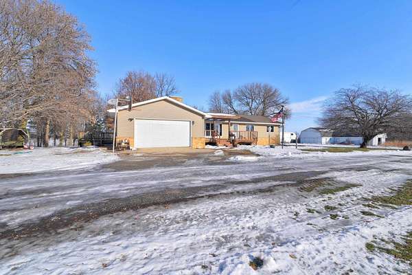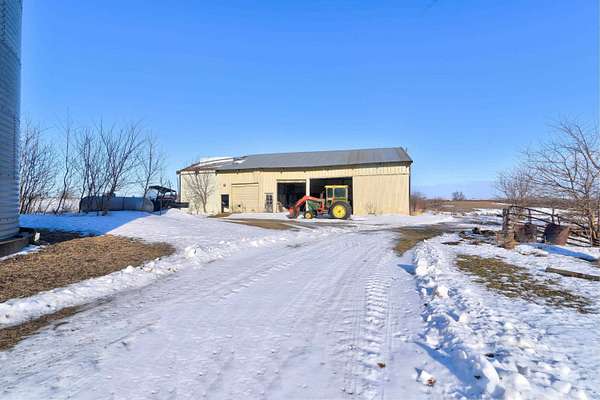 Exclusive 29 acres: 20 farmland and 9 farmstead. Productive land, outbuildings, barn; close to town, 15 minutes to the Best of the Midwest; space with privacy on hard-surface road, and the preferred ranch-style HOME. SPREAD-OUT in over 1,700 sq ft per-level with 3 BEDROOMS, 2 baths, and laundry room on the main-level. The Primary Bedroom Suite has a 1/2 -bath for your personal-space. Adore the panoramic stone accent-wall seen from the living, dining to patio, and sitting room(s). The kitchen offers an abundance of storage and newer appliances. Appreciate the lower-level possibilities: family room, 2 bonus non-conforming non-finished 'bed'rooms (5), open 3/4 -bath / laundry & an abundance of storage = double your space in this SOLID HOME! Impressive barn with stables, fenced grazing-area, auto-water, metal roof, and full floor in the loft; PLUS, pole building(s), workshop, storage building(s) and /or MORE. Forced air HVAC; and also, a Pellet Furnace if one prefers. Rural water inside, well water outside; camper amp outlet and electric in buildings; and brand-new septic escrowed for Buyer. This is YOUR countryside HEAVEN: farm or land-rental income, animals / horses / livestock, hunting, recreation, boarding or business, AND / or MORE. *Land unites with 70 acres of DNR land which makes the SkyLine feel like it only BELONGS TO YOU!