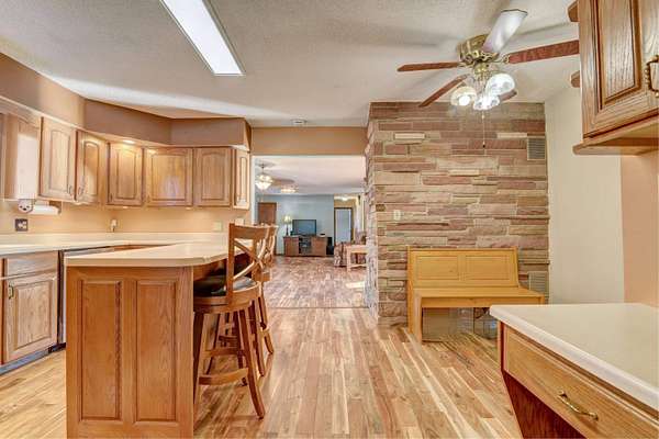 - Broadband Avail, Cable TV, Ceiling Fan(s), Eat-In Kitchen, Garage Door Opener, Hot Tub, Kitchen Center Island, Main Floor Bedrooms, Main Floor Laundry, Natural Woodwork, Washer/Dryer Hkups, Window Coverings