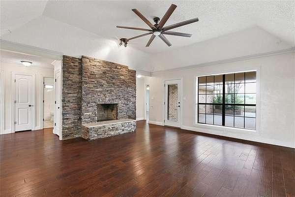 Ten acre property hosting a stunning 4-bedroom main residence with a detached 1-bedroom, 1-bath studio attached to garage built to store lots of toys! The studio offers private living space perfect for guests or multi-generational living. Inside, hardwood and tile throughout with a gorgeous kitchen featuring detailed trim-work, a beamed ceiling, and a huge granite island, open to the second living area and the utility room with sink. The front living room showcases a stone fireplace with wiring for a flat screen and a vaulted ceiling. The primary bath has been updated with half-stone tile accent walls, framed mirrors, and antiqued cabinetry. Located a short distance to schools, this property combines expansive acreage, and stylish, low-maintenance finishes.