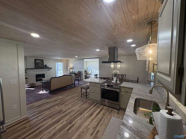 Amazing views of the lake from this very special home. This beautiful home sits on almost 2 acres, with 4 bedrooms and 3 baths, Notice the pine ceilings as you walk into the open floor plan. Home includes Large game room with a wet bar, extra large master suite with large new tiled bath. 3 more bedrooms upstairs and another large bath. Down a flight of stairs to a large bonus/ family room with another wet bar area and its own full bath. With a Private entrance, this area could be used as a teen suite or mother in laws quarter's. Covered porch on front to have your coffee while enjoying the view of the lake. Covered porch in back with privacy wall set up for an outdoor entertainment area
