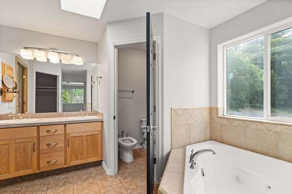 - Breakfast Bar, Built-In Features, Double Vanity, Fiberglass Stall Shower, Granite Counters, Kitchen Island, Open Floorplan, Shower/Tub Combo, Soaking Tub, Tile Shower, Vaulted Ceiling(s), Walk-In Closet(s)