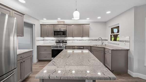 Welcome to this stunning, fully renovated home located on over 2.6 acres of picturesque land with breathtaking views of Lake Yale. This fantastic property boasts a prime location just minutes away from shopping and recreational activities such as the Marsh Memorial Park and Boat Ramp. Step inside this beautifully updated home and be captivated by the luxurious finishes throughout. The large family room features a centerpiece fireplace, creating a cozy atmosphere for chilly evenings. The modern kitchen is fully equipped with brand new cabinets, stunning granite countertops, and top-of-the-line appliances. The spacious master bedroom comes complete with a walk-in closet, providing ample storage space. The second bedroom, located upstairs, faces the lake and features its own full bathroom. Enjoy the picturesque views from the front porch, which overlooks the sparkling waters of Lake Yale. Relax on the 12x28 screened-in porch, which provides plenty of space for entertaining guests or unwinding after a long day. The expansive backyard offers enough room to build your dream pool and create your own private oasis. This fantastic home also features fresh paint, all-new premium windows, bathrooms, and flooring - the list goes on! A new water heater and new AC unit downstairs provide added convenience and comfort. Plus there is NO HOA. Located just minutes from major highways including 429, 441, and 46, and only 19 minutes from charming downtown Mount Dora, this home is perfect for those seeking both convenience and luxury.