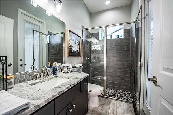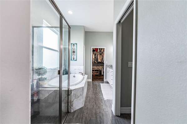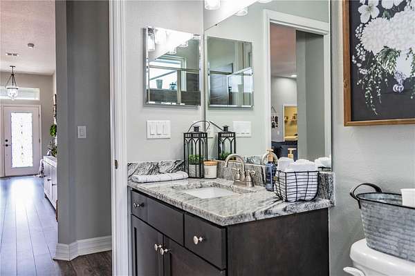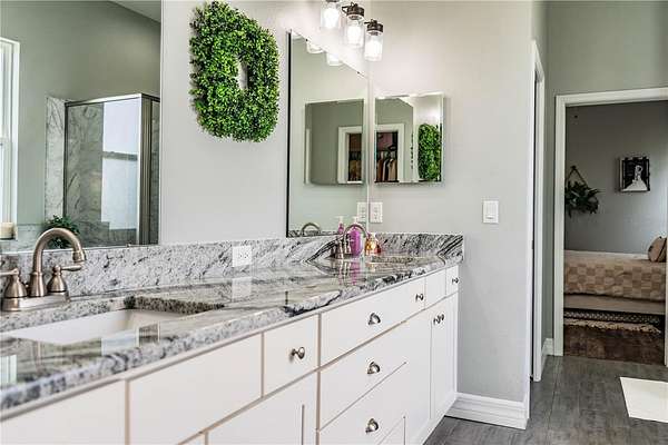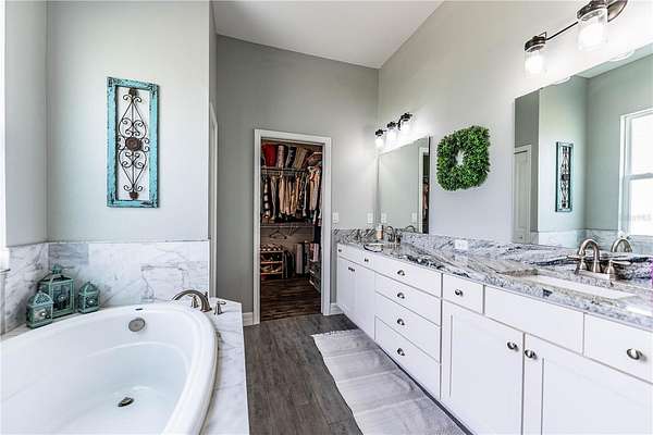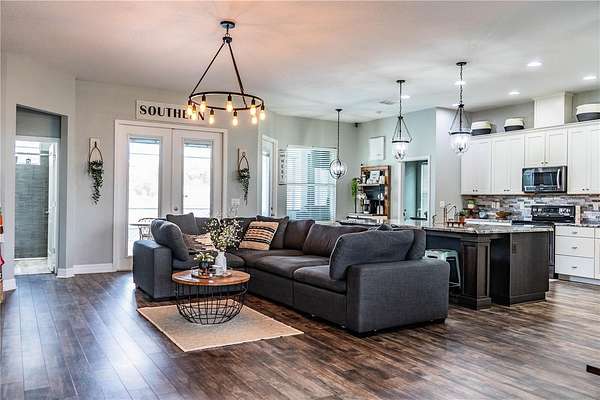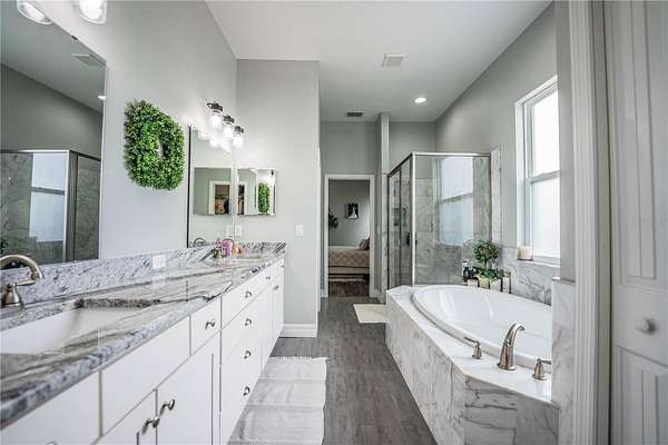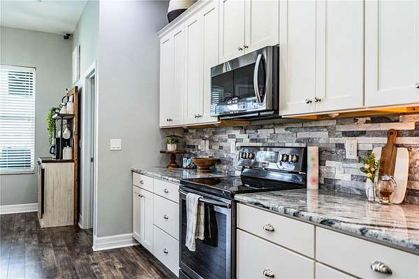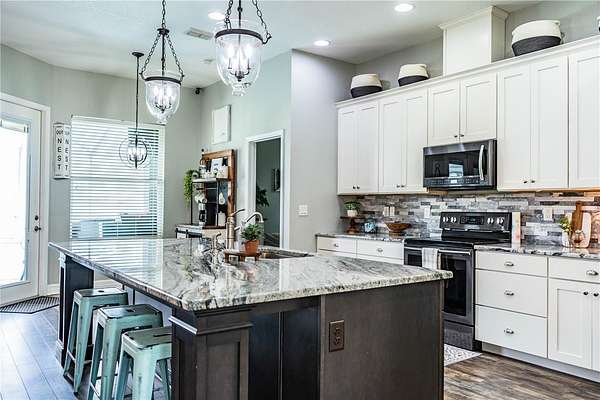 - Ceiling Fans(s), Eat-In Kitchen, High Ceilings, Living Room/Dining Room Combo, Open Floorplan, Solid Wood Cabinets, Split Bedroom, Stone Counters, Walk-In Closet(s)