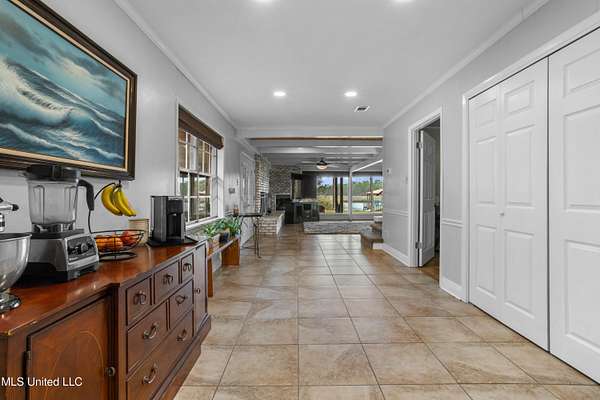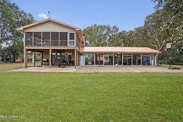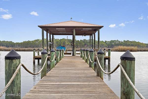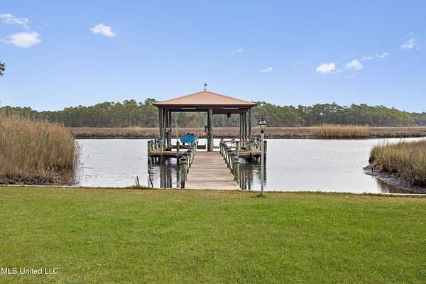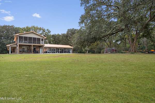 Rare gem in a fantastic location!! This beautiful waterfront home is situated on 4.4 private picturesque acres with a dock and covered boat slips. Experience the beauty of mature oak trees, stunning views of Mary Walker Bayou, and direct water access to the Pascagoula River and Gulf. Step inside this 4-bedroom 2.5-bath home to discover a spacious living room with breathtaking views, wood beamed ceiling, and a brick fireplace. The kitchen features new stainless-steel appliances, granite countertops, breakfast bar, and pantry for extra storage. The open dining room adjoins the kitchen and has ample space for a large dining table, perfect for entertaining guests. The glass enclosed sunroom, complete with sliding doors that open out to a patio, offers an additional 1,100 sf of entertaining space and an unobstructed view of nature. Adjacent to the sunroom, you'll find a convenient half-bath /laundry room. On the second floor, you'll discover the private primary bedroom complete with an updated ensuite. The highlight is the direct access to a screened-in deck, offering gorgeous water views perfect for enjoying your morning coffee and unwinding with the evening sunset. This home features a band new HVAC system, a new water heater, and newly installed gutters for both the home and boat dock. Additionally, there's a new deck for the entire dock. To top it off, there's a spacious 10' X 30' storage shed equipped with custom shelves and a workbench. Talk about a staycation.... This slice of paradise is a must see! Don't let this opportunity pass you by.