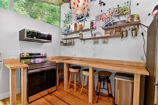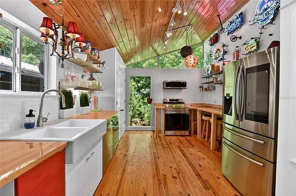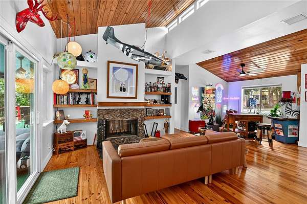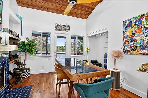 This is not just a home, it’s an experience. Set on 5 private, gated lakefront acres, this one-of-a-kind retreat offers a rare opportunity to truly escape the stress and chaos of everyday life and step into a setting that feels peaceful, inspiring, & completely connected to nature. It’s the kind of place where you instantly exhale… yet you’re just minutes from Mount Dora’s dining, shops, and year-round festivals. Home to your getaway… or your everyday!! Designed with striking mid-century modern influence, the home is filled with warmth, character, and natural light. Vaulted ceilings with rich wood detail, hardwood floors, clerestory windows, & expansive glass create a bright, open atmosphere that blurs the line between indoors & out. Every space feels intentional, inviting, and unlike anything you’ll find in a typical home. The large, updated kitchen is both beautiful & functional, featuring high-end appliances, generous workspace, & a bright eat-in area overlooking the natural landscape. A split-bedroom floor plan adds privacy, with the convenience of an indoor laundry room. The primary suite is its own retreat, complete with a glass slider to the outdoor living area, a beautifully remodeled bath, & a generous walk-in closet. Step outside and the property truly comes to life. A hidden concrete pathway winds through the trees, leading you to a secluded screened room overlooking the lake, an unforgettable feature that feels like your own private sanctuary. The pool & deck are perfectly positioned to capture wide, tranquil water views, where the sounds of nature and shifting light create a setting that feels more like a getaway than a residence. The lake itself becomes part of your everyday lifestyle—perfect for canoeing at sunrise, jet skiing across open water, or fishing right from your own property, all while enjoying lakefront living that is not located in a flood zone. You’ll also appreciate the added peace of mind of a 2024 roof. It’s a setting that invites you to slow down, explore, and enjoy the outdoors. Beyond the main home, the property unfolds into a rare private compound with incredible flexibility. In total, there are five finished buildings, all with air conditioning, ideal for guest space, offices, fitness, studios, or creative use along with two additional storage buildings. A detached garage and large covered carport provide ample space for vehicles, equipment, or hobbies. A full outdoor bath enhances the indoor-outdoor lifestyle. This is a property for someone who wants something different, something special. Private, peaceful, and full of personality, it offers a lifestyle that is hard to find and impossible to replicate. GREAT SCHOOLS! Zellwood offers a peaceful, tucked-away setting while placing you just minutes from the charm of Mount Dora, known for some of the finest dining in Central Florida, boutique shopping, and its famous year-round craft shows. With convenient access to Sanford, Orlando, and major interstates, you truly have the best of both worlds. Zellwood, FL, is a small community spanning less than 4 square miles, characterized by its rural charm and agricultural surroundings. It is known for its signature Zellwood Sweet Corn and features marshes, farms, and citrus orchards. Despite its secluded feel, Zellwood is located close to everything and theme park! Welcome home to where life slows down and living begins. https://www.homes.com/property/3717-laughlin-rd-zellwood-fl/pysq44bycr2v7/?dk=dscfsew67j0p1