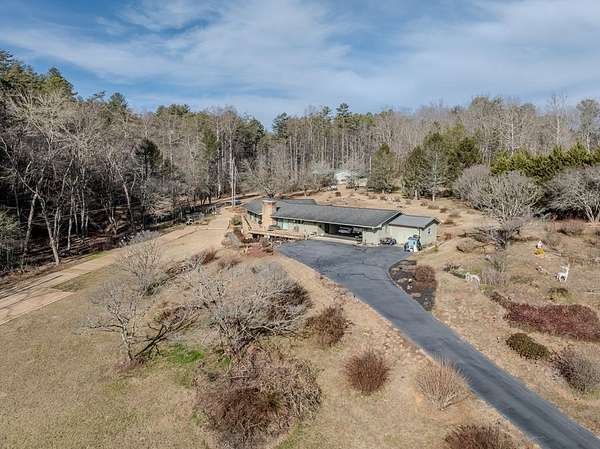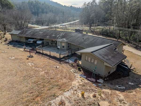 Adorable, one level home sitting on OVER 4+ acres of peaceful tranquility with a stream! Drive up to your paved driveway, (Close to the Main Road, and close to Andrews/Murphy) to an attached double carport with workshop & separate storage areas. Enter your home to your kitchen with granite, lots of cabinets, pantry & an eat-in breakfast bar next to your dining area. The home features a cozy living room with a fireplace in the middle of glass sliders to enjoy the view (See photos!)! The sunroom is being used as storage- w/ French doors. Down the hall is your guest bath and 2 bedrooms with sliders to deck access. Your spacious Main Level Ensuite, has sliders, 2x vanities and a separate sitting area. Ample room for storage, inside or outside! House Features a Large deck perfect for entertaining. The Seller Has chickens, great for Animal Lovers, Property could have a lovely garden! So much potential and endless opportunity! Seller is also using bonus room as storage. Selling As is. Seller negotiable on some things/Furniture/Appliances. Seller maintains well and collects a fee from neighbors. Schedule a viewing before this sells!!