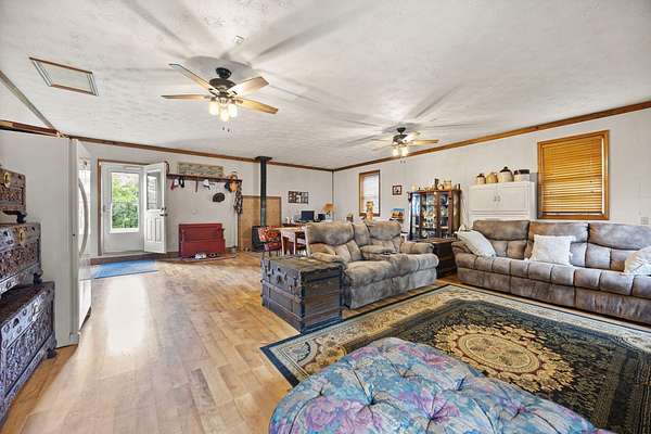 Private Country Homestead on 27.3 Acres with Stocked Ponds, Barns & More! Location: Secluded and serene with 900 feet of road frontage, this rural haven offers the perfect blend of privacy, functionality, and natural beauty. Home at a Glance: - 2,000 sq ft | 3 Bedrooms | 2 Bathrooms - Spacious Living Room + Great Room - Open Kitchen & Dining Combo - Dedicated Laundry Room - Expansive Front & Back Porches - perfect for relaxing or entertaining This well-maintained home offers multiple living spaces, a functional layout for family life or guests, and charming outdoor living areas. Land & Outdoor Features: - 27.3 Acres of usable, private land - 2 Stocked Ponds - great for fishing or recreation - Fenced Garden Area with Double Gate - accessible by tractor - 99 ft of Road Frontage for easy access and added privacy The acreage offers ample space for gardening, livestock, or simply enjoying nature. Outbuildings & Functional Structures: Main Barn - 30' x 40' - Built-in 12' x 14' Kitchen: - Double Sink - Four-Burner Stove - Canning Setup Rustic Cabin. Rustic Cabin - 24' x 12' " Includes 12' x 12' Loft (fits two full beds) " Ideal for guests, hunters, or a creative retreat Storm Cellar - 12' x 16' " Floor drains (interior and exterior) " Use as storm shelter or cool, dry food storage Hay Barn - 30' x 40' " Upper-Level 12' x 12' Deer Stand " Heated with Mini Fridge - perfect for hunting " Stores up to 125 Round Bales (4x5) Wooden Barn - 24' x 30' " Wood Flooring " Working Refrigerator " Gas-Powered Air Compressor " Excellent Workshop Space Extras & Perks: " Farm Equipment Negotiable