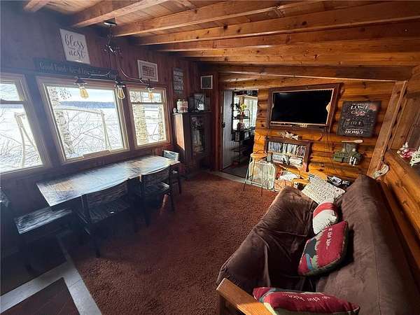 Discover this exceptional seasonal cabin situated on a stunning, well-manicured 2.33-acre parcel overlooking Sebie Lake. Enjoy breathtaking lake views and excellent fishing right from your own dock. The cabin offers a warm and inviting atmosphere with a cozy kitchen, comfortable living area, and charming stone fireplace. A detached garage includes a bunkroom equipped with two queen-size beds, electricity, and air conditioning--perfect for hosting guests. A prepared build site sits on the upper portion of the property, offering an ideal location for future construction or expansion. Additional features include an outdoor shower, and a drilled well for dependable water. Surrounded by nature, this property provides a peaceful, secluded feel with nothing but the sounds of the outdoors. Also, the South Side of the lake is undeveloped, state owned land, plenty of restaurants, golf course and trails for snowmobiling and ATV enjoyment all nearby. Don't miss this rare opportunity to own a truly special getaway on Sebie Lake.