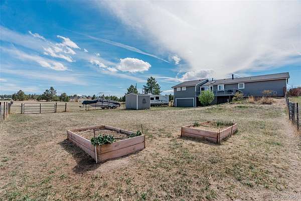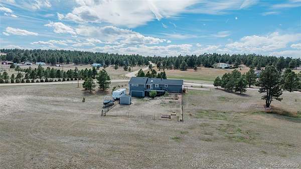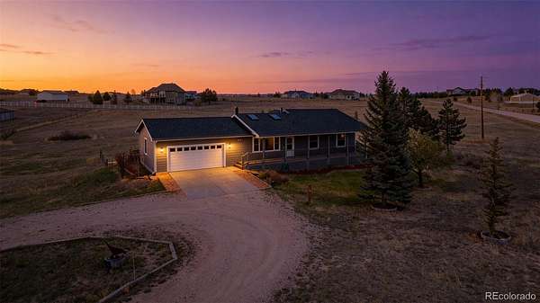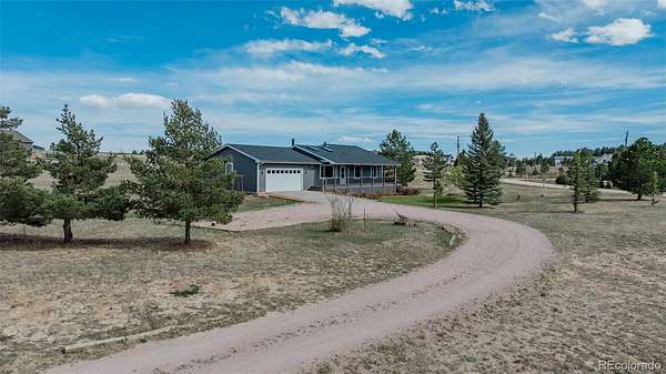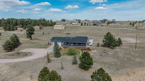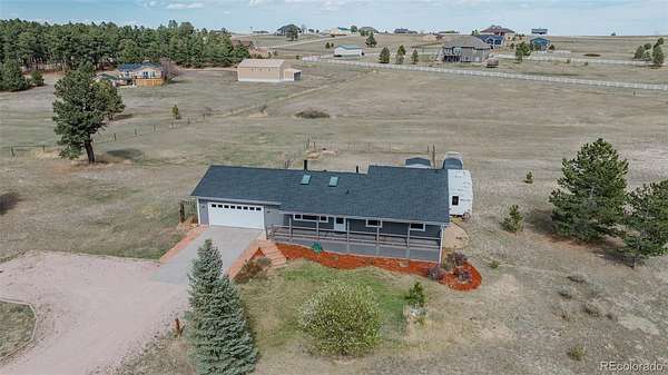 Welcome to your peaceful country retreat in Elizabeth, Colorado! Just 200 yards off pavement and situated on 5 usable acres, this well-cared-for ranch-style home offers the perfect blend of privacy, space, and potential. Whether you're looking for room to spread out, space for animals, or a multi-generational living setup, this property has so much to offer. The home's layout offers comfort and functionality with a welcoming feel throughout. The main level features 2 spacious bedrooms, full bathroom, the primary bedroom & bathroom, along with the laundry room, kitchen and dining room. Newer interior paint and newer stainless steel kitchen appliances. The oversized 2-car garage on this level offers plenty of space for vehicles, tools, or toys. Downstairs, the walkout basement is a blank canvas with a finished bathroom already in place, its own separate entrance and a 2 car garage—making it ideal for adding a mother-in-law suite, rental unit, or expanded living space. 8x10 storage shed, small fully fenced yard, new sewer line from house to tank and newer roof. This one is a must see! The recent community vote was in favor of dissolving the community covenants. It is a multi-step process and the Board is working through each phase. Please visit the community website for additional information.