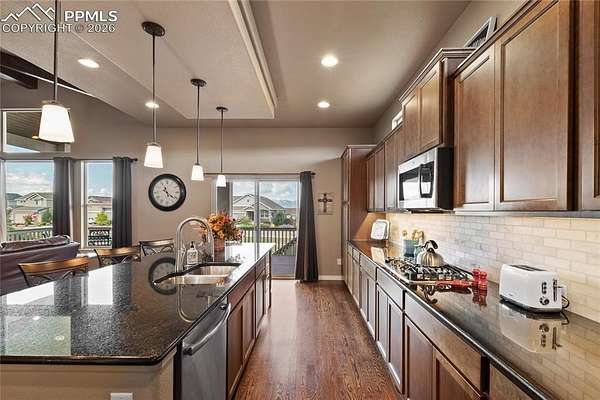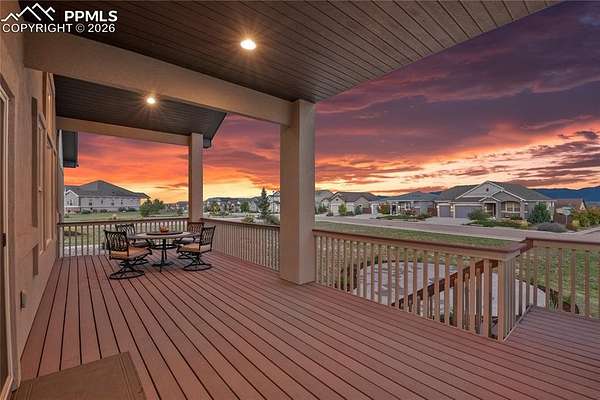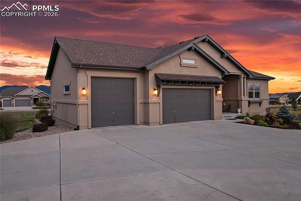 Luxury, Space & Mountain Views - Acreage Living Without the Commute Set on 1.67 acres with sweeping mountain views, this exceptional ranch-style home offers the rare blend of privacy, space, and in-town convenience. Designed for both everyday ease and unforgettable entertaining, the layout delivers true main-level living with room for everyone to spread out. The heart of the home is a gourmet kitchen featuring an oversized pantry and coffee bar, seamlessly connecting to the vaulted living room with gas fireplace-a warm, inviting space for gatherings large or small. Formal dining sets the stage for special occasions, while casual meals and summer evenings flow effortlessly onto the covered deck and stamped concrete patio, perfect for indoor-outdoor living. The main-level primary suite is a peaceful retreat with a spa-inspired 5-piece bath, while two additional bedrooms and a full bath offer flexibility for guests, home offices, or hobbies. Downstairs, the fully finished basement expands your living options with a wet bar, full refrigerator, second fireplace, and three more bedrooms-including a secondary primary suite with private 3/4 bath, ideal for multi-generational living or extended stays. Car enthusiasts and hobbyists will appreciate the heated 4-car tandem garage, plus a 25' x 30' detached 2-car workshop, along with RV parking. Thoughtful extras include solar panels, fresh landscaping, and acreage filled with native grasses and wildflowers-offering room to roam, relax, and enjoy Colorado living at its best. With luxury finishes, multiple suites, expansive entertaining spaces, and breathtaking views, this home delivers a lifestyle that's increasingly hard to find. Acreage, elegance, and convenience-right where you want to be.